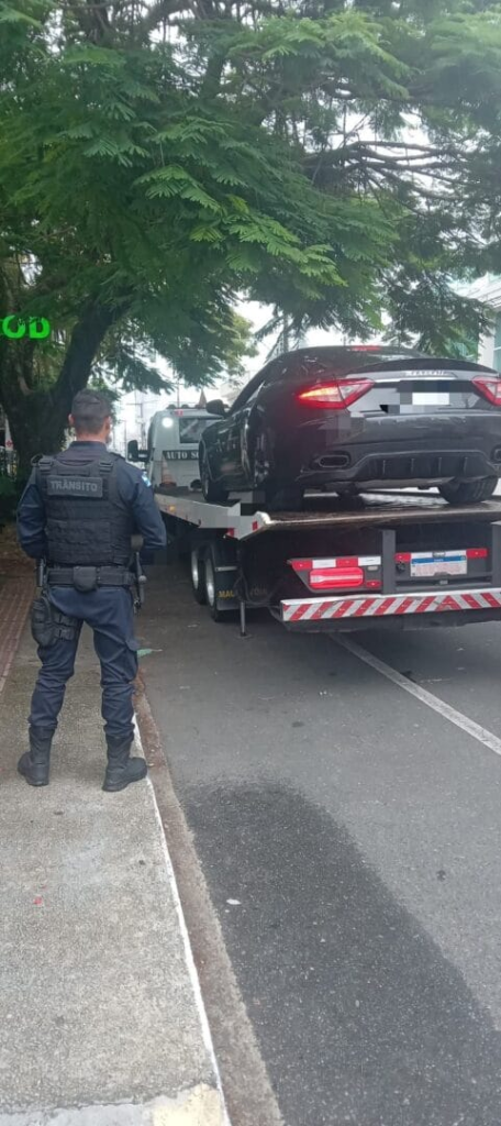 Um carrão de luxo foi guinchado e levado ao pátio da BC Trânsito após os agentes da autarquia constatarem que ele tinha mais de R$ 47 mil em débitos. O Maserati, veículo que a depender do ano de fabricação custa entre quase meio milhão de reais e mais de R$ 1 milhão, estava com o licenciamento atrasado desde 2021.