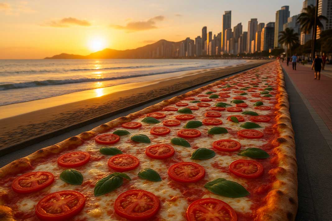 Balneário Camboriú agora não tem só os maiores prédios do Brasil, mas tem também a maior Pizza.