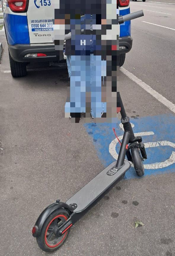 O menor acabou sendo alcançado e abordado pela equipe de motociclistas e teve o patinete removido ao pátio.
