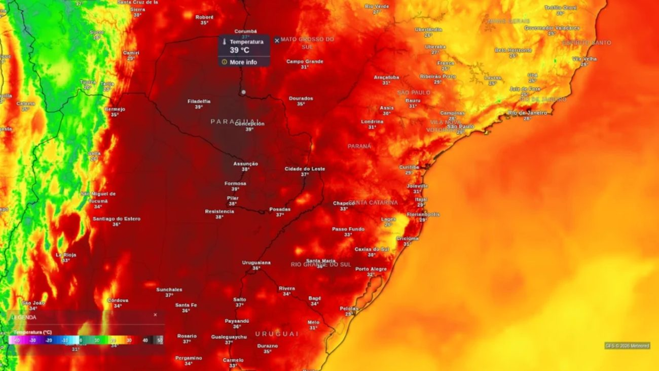 Uma onda de calor deve disparar entre sexta-feira (27) e o fim de semana, com temperaturas muito acima da média em grande parte do centro-sul do Brasil. Estados das regiões Sul, Sudeste e Centro-Oeste podem registrar máximas próximas de 38°C.